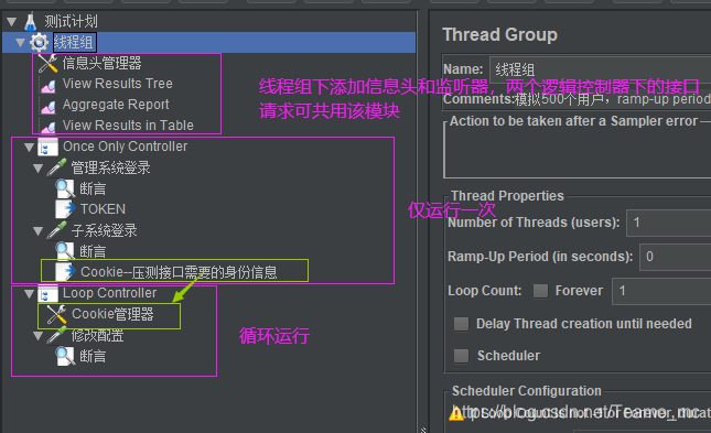 在日常的接口压力测试过程中,最常见的问题是如何处理登录问题,在对指定接口进行压力测试时,需要控制登录模块接口仅运行一次。此时需要用到jmeter的逻辑控制器功能。